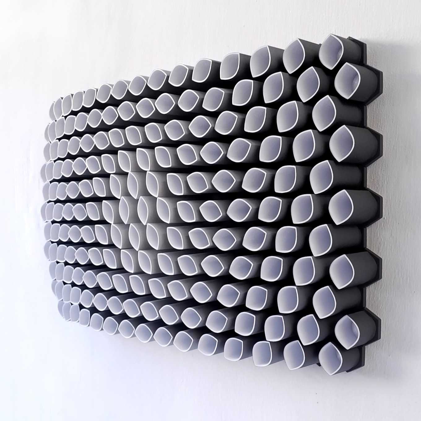 This sculpture is inspired by the dynamic patterns of air and water flow in nature. It is crafted using a novel 3D printing process that combines geometric tessellations with organic forms and textures. With striking movement and depth, the experience of this sculpture changes with every angle it is observed. This sculpture will be a captivating addition to your home decor.