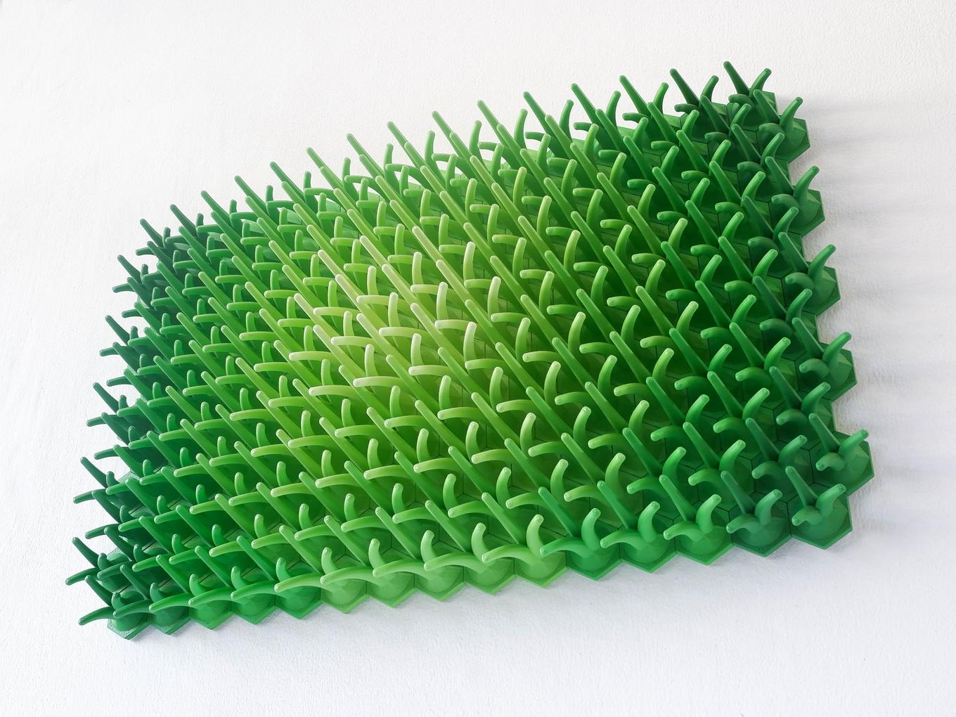 This sculpture is inspired by the dynamic patterns of air and water flow in nature. It is crafted using a novel 3D printing process that combines geometric tessellations with organic forms and textures. With striking movement and depth, the experience of this sculpture changes with every angle it is observed. This sculpture will be a captivating addition to your home decor.