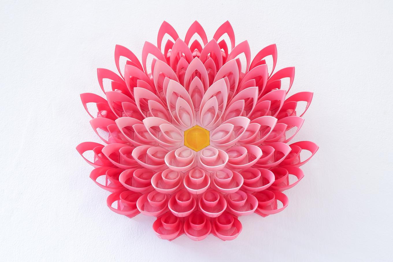 This 3D printed wall sculpture is entitled Small Pink Lotus. It is a unique and original piece of art that will make a beautiful addition to your home decor.